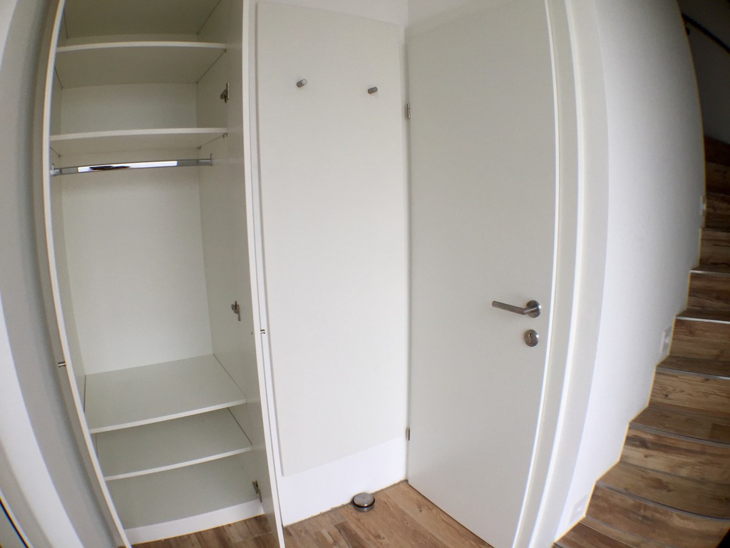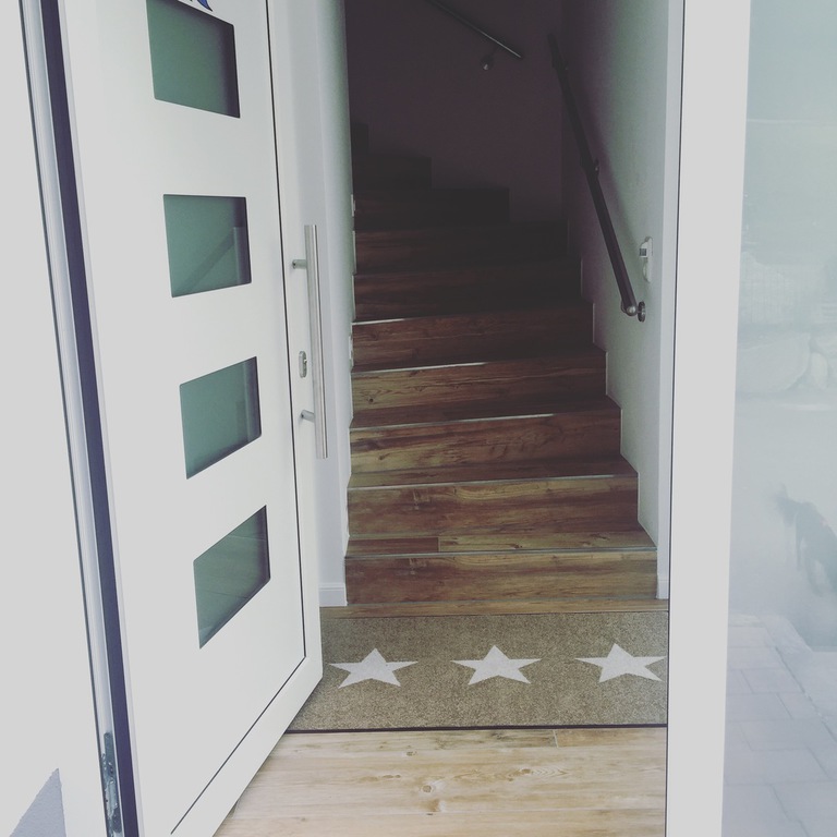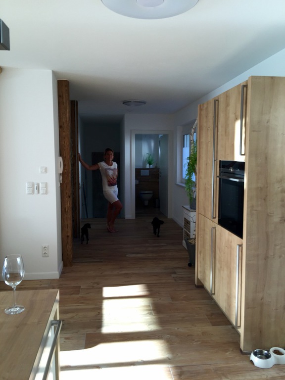 Alle Zimmer mit Bioinnenkalkputz mit Mineralfarbe gestrichen, Holzoptikfliesen, Rolladen