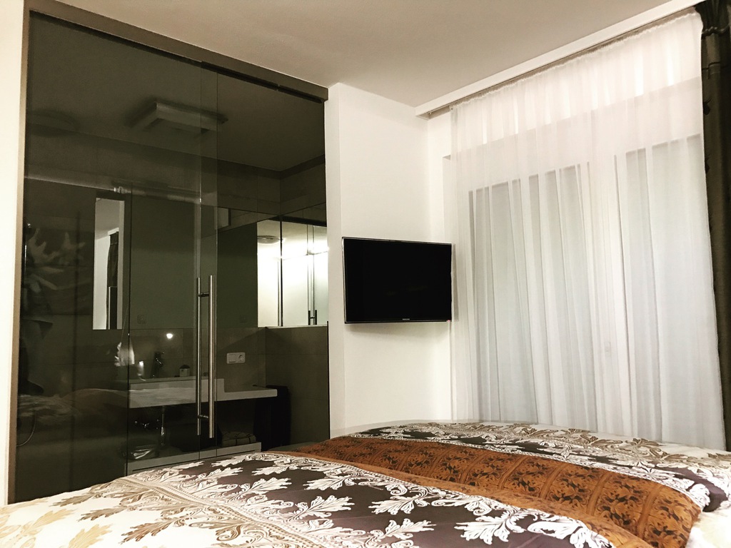 1 Schlafzimmer mit eigenem Bad/Dusche/WC, TV, Boxspringbett 180 cm
